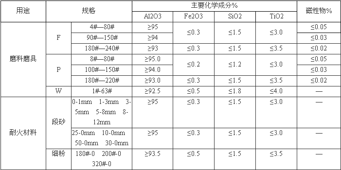 產(chǎn)品粒度按國際標準以及各國標準生產(chǎn),可按用戶要求粒度進行加工。通用粒度號為 F4~F320,其化學(xué)成份視粒度大小而不同。突出的特點是晶體尺寸小耐沖擊,因用自磨機加工破碎,顆粒多為球狀顆粒,具有純度高,質(zhì)地致密,堆積密度大,自銳性強,韌性好,磁性物含量特低的特點,用其制成的磨具磨削鋒利,發(fā)熱率低,磨削比高,且使用時沾附少;制成的燒結(jié)磨具具有燒成后顏色深藍、不起網(wǎng)狀裂紋、無銹斑的特點,適用于制造陶瓷、樹脂高固結(jié)磨具以及研磨、拋光等。